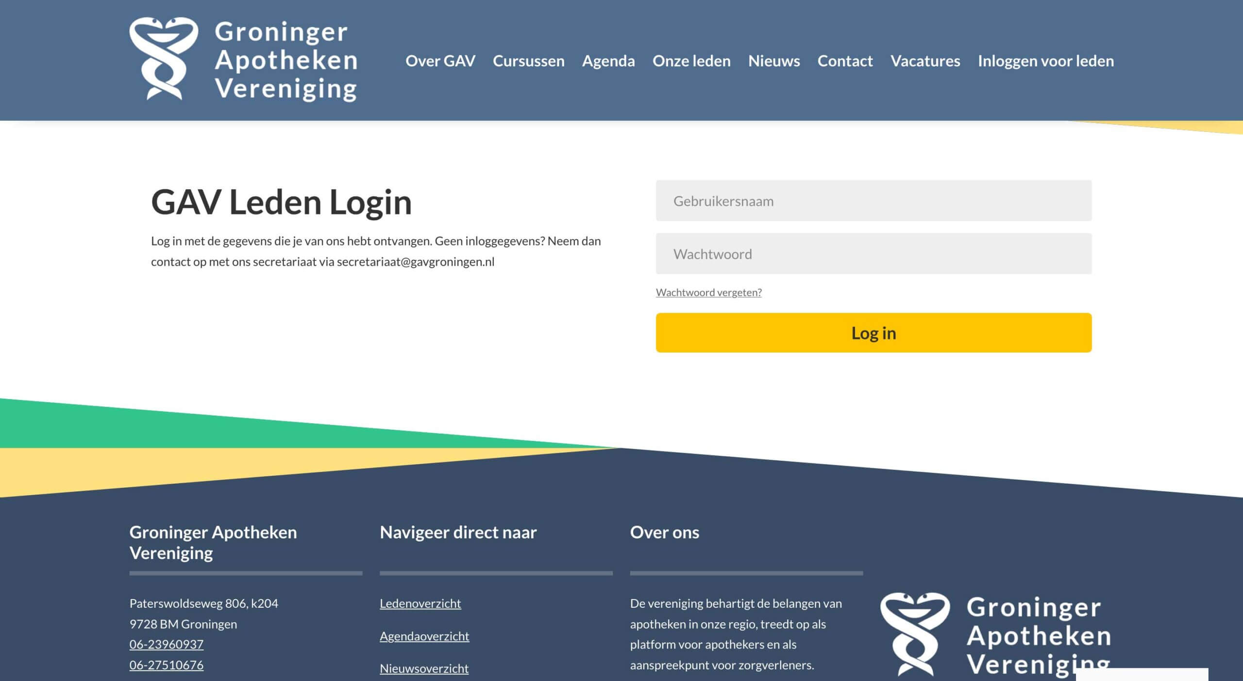 Voor de Groninger Apothekers Vereniging (GAV), hebben we een innovatieve website met een geïntegreerd ledendeel en custom cursusmodule met agendafunctionaliteit gecreëerd. De nieuwe website is makkelijker in beheer voor de organisatie zelf en sluit qua uitstraling beter aan bij de doelen van GAV.